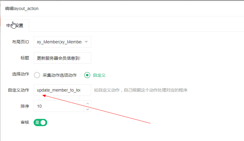 默认自定义动作切换: 切换显示自定义动作