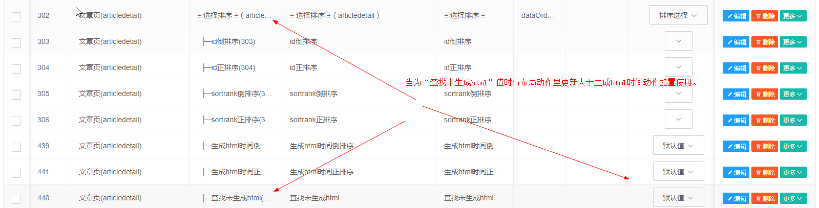 当为“查找未生成html”值时与布局动作里更新大于生成html时间动作配置使用。