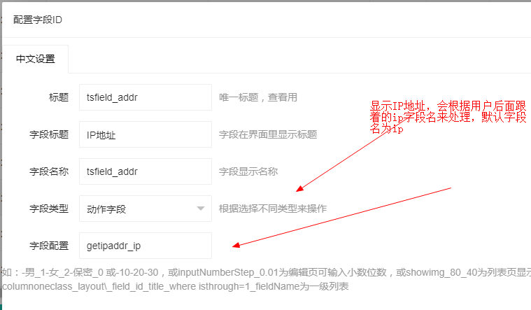 显示IP地址,会根据用户后面跟着的ip字段名来处理,默认字段名为ip。