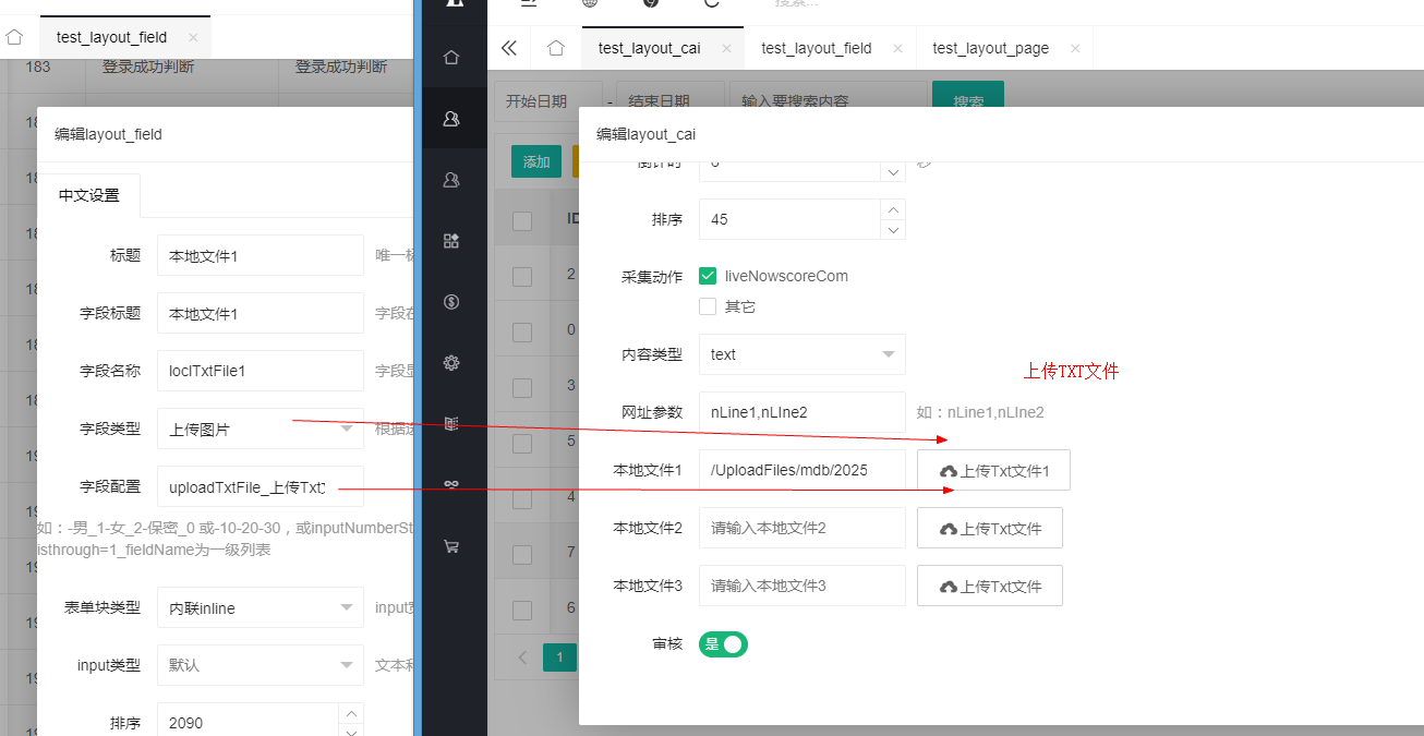 第2参数:layout\_cai\_id为当前表循环值里对应字段名